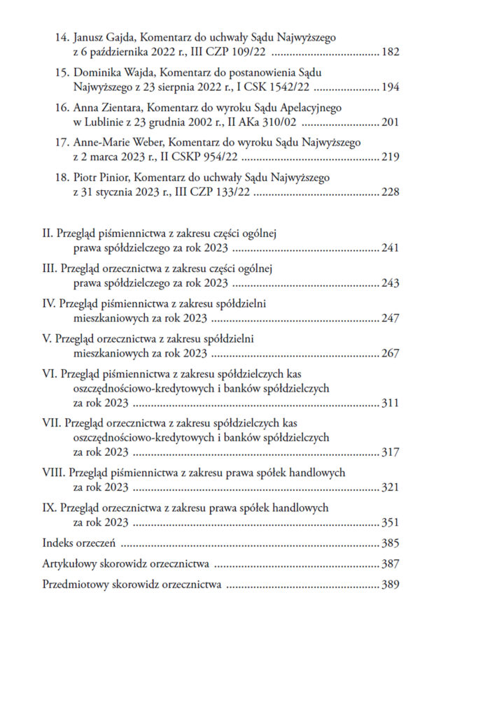 Rocznik orzecznictwa i piśmiennictwa z zakresu prawa spółdzielczego za rok 2023-spis Published Date: 11 lutego 2026 OKŁADKA STRONA REDAKCYJNA REDAKCJA Spis treści